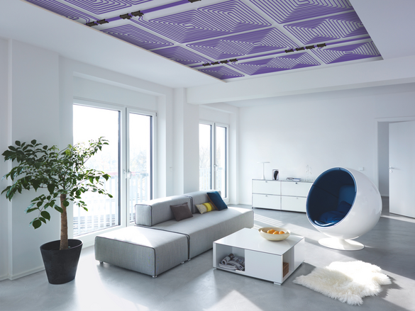 Los paneles radiantes de techo son una solución de refrigeración muy eficaz, especialmente cuando se combinan con una bomba de calor. El agua que circula por el interior de los paneles absorbe el calor, que luego se transfiere al exterior mediante la bomba de calor.