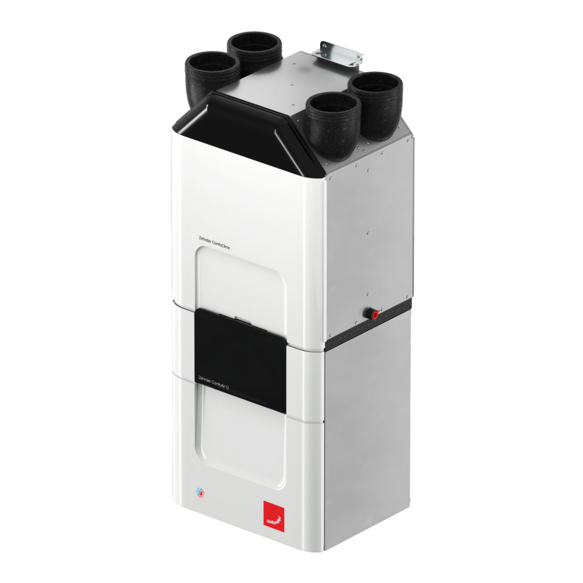 Para garantizar un ambiente interior saludable y confortable durante todo el año, la vivienda integra una solución completa de Zehnder que combina ventilación mecánica con recuperación de calor y climatización. El sistema instalado incluye el ComfoAir Q para la ventilación y el ComfoClime para la climatización, proporcionando: